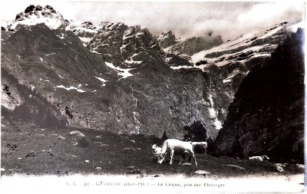 Fotografía de Páturas y un paisaje de fondo, Francia PlaceLugar Gavarnie, Francia ↗ LanguageIdioma French Francés SourceFuente Colección de postales de Manuel Campero La foto muestra un pastizal en Gavarnie, Francia, en el que se crían animales. Cabra Dominant colourColor dominante ← Back to collection← Volver a la colección View on map →Ver en el mapa →