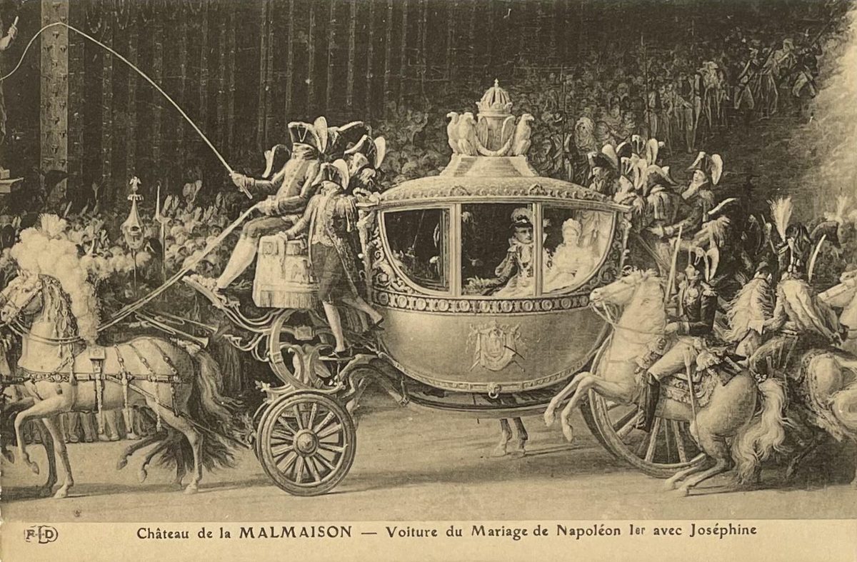 Château de la Malmaison- Voiture du Mariage de Napoléon & Joséphine YearAño 1911 PlaceLugar Rueil-Malmaison, Francia ↗ LanguageIdioma French Francés Castillo de la Malmaison. Litografía de Napoleón I con Josefina dentro de su carruaje de bodas. Color: blanco y negro, medidas: 9x14cm Castillo de la MalmaisonBodaNapoleónJosefinaCarruajeLitografía Dominant colourColor dominante ← Back to collection← Volver a la colección View on map →Ver en el mapa →
