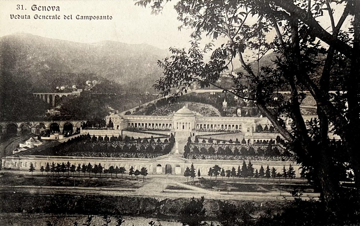 Vista general del campo santo YearAño 1912 PlaceLugar Génova, Italia ↗ LanguageIdioma Italian Italiano Fotografía blanco y negro del campo santo de Génova Cementerioedificios Dominant colourColor dominante ← Back to collection← Volver a la colección View on map →Ver en el mapa →