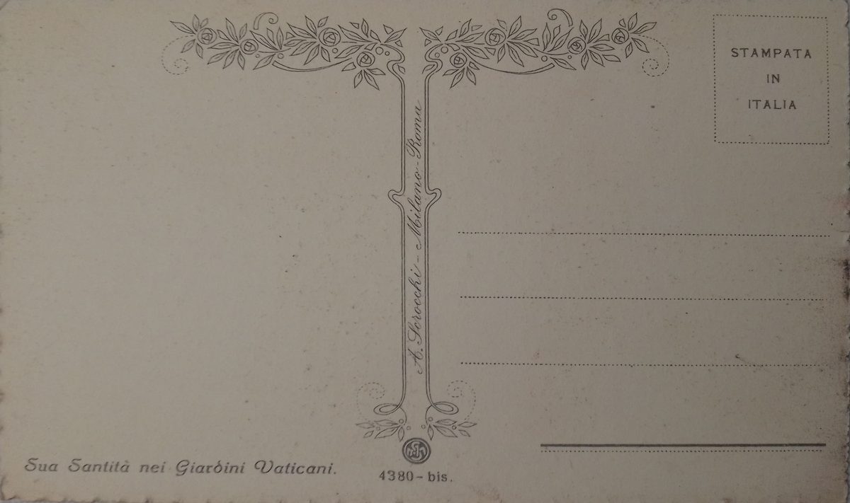 Pintura Papa PlaceLugar Vaticano ↗ LanguageIdioma Italian Italiano SourceFuente Colección de postales de Manuel Campero Su santidad en las tinajas vaticanas postal Religion Dominant colourColor dominante ← Back to collection← Volver a la colección View on map →Ver en el mapa →