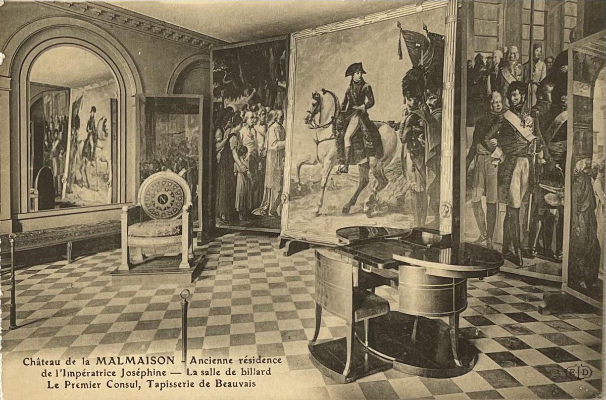 Château de la Malmaison- La salle de billard YearAño 1911 PlaceLugar Rueil-Malmaison, Francia ↗ LanguageIdioma French Francés Castillo de la Malmaison. Sala de billar de la antigua residencia de la emperatriz Joséfina. Sala "El primer cónsul" con tapicería de Beauvais. Color: sepia, medidas: 9x14cm Castillo MalmaisonEmperatriz JosefinaNapoleónSala de billarEl primer ConsúltapiceríaBeauvais Dominant colourColor dominante ← Back to collection← Volver a la colección View on map →Ver en el mapa →