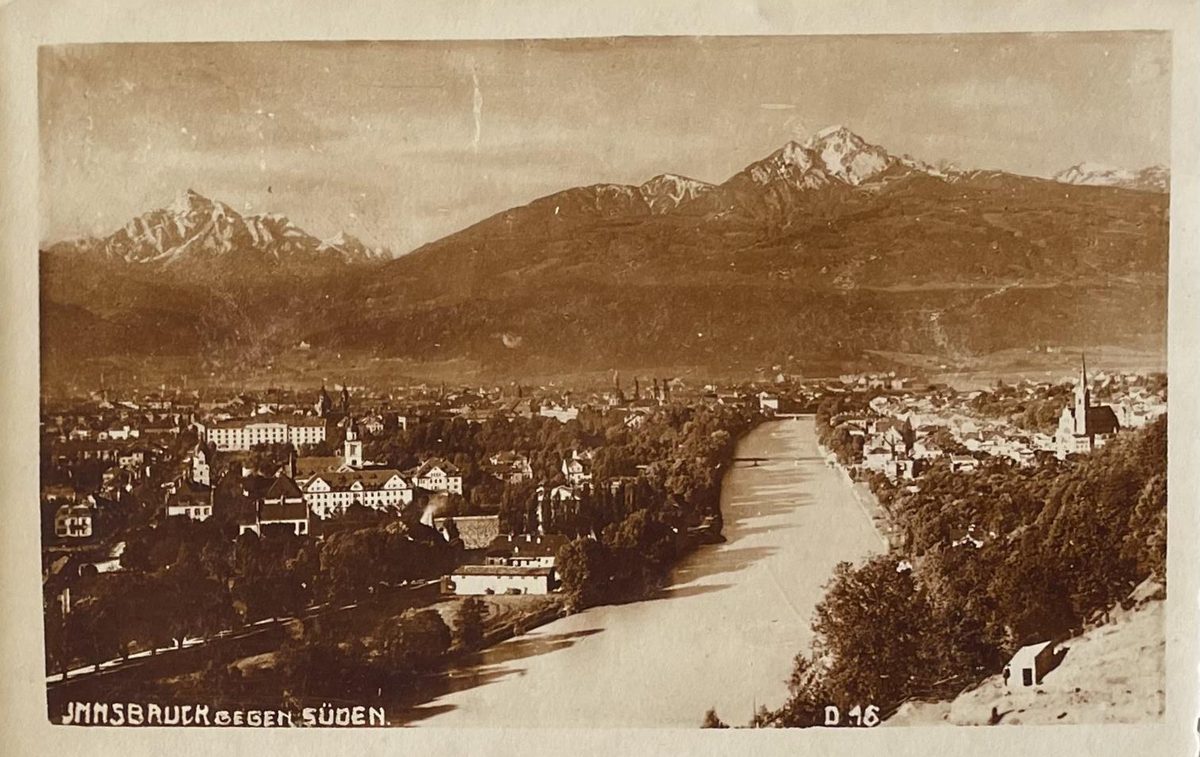 Innsbruck gegen süden YearAño 1911 PlaceLugar Innsbruck, Austria ↗ LanguageIdioma German Alemán Paisaje de la ciudad de Innsbruck con vista hacia al sur dejando ver los Alpes. Color: sepia, medidas: 9x14cm AustriaCiudadPaisajeAlpes Dominant colourColor dominante ← Back to collection← Volver a la colección View on map →Ver en el mapa →