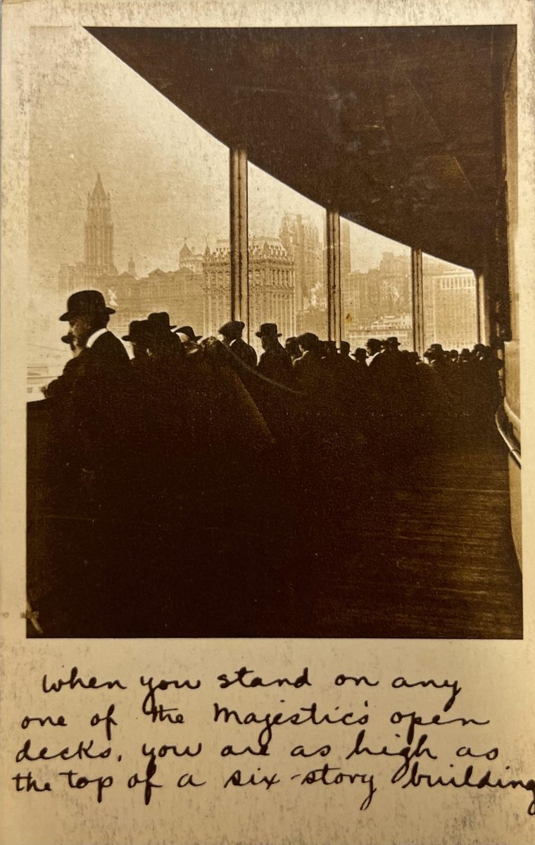 White Star Line YearAño 1912 PlaceLugar Liverpool, Inglaterra ↗ LanguageIdioma English Inglés Fotografía sepia de personas abordo del barco Personas Dominant colourColor dominante ← Back to collection← Volver a la colección View on map →Ver en el mapa →