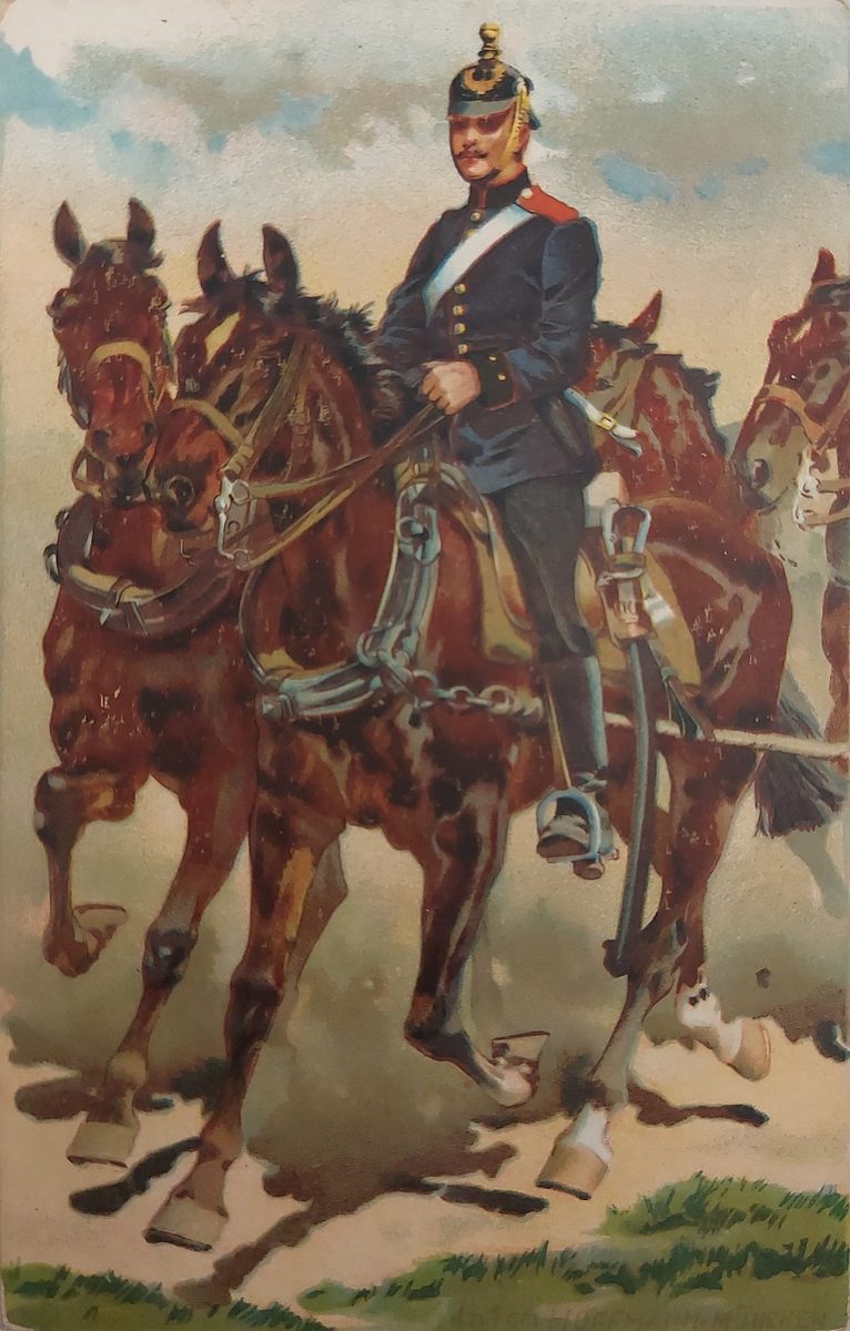 Pintura de soldado alemán sobre su caballo PlaceLugar Berlín, Alemania ↗ LanguageIdioma German Alemán SourceFuente Colección de postales de Manuel Campero Pintura de un soldado con su caballo y más caballo detrás en movimiento. Soldado Dominant colourColor dominante ← Back to collection← Volver a la colección View on map →Ver en el mapa →