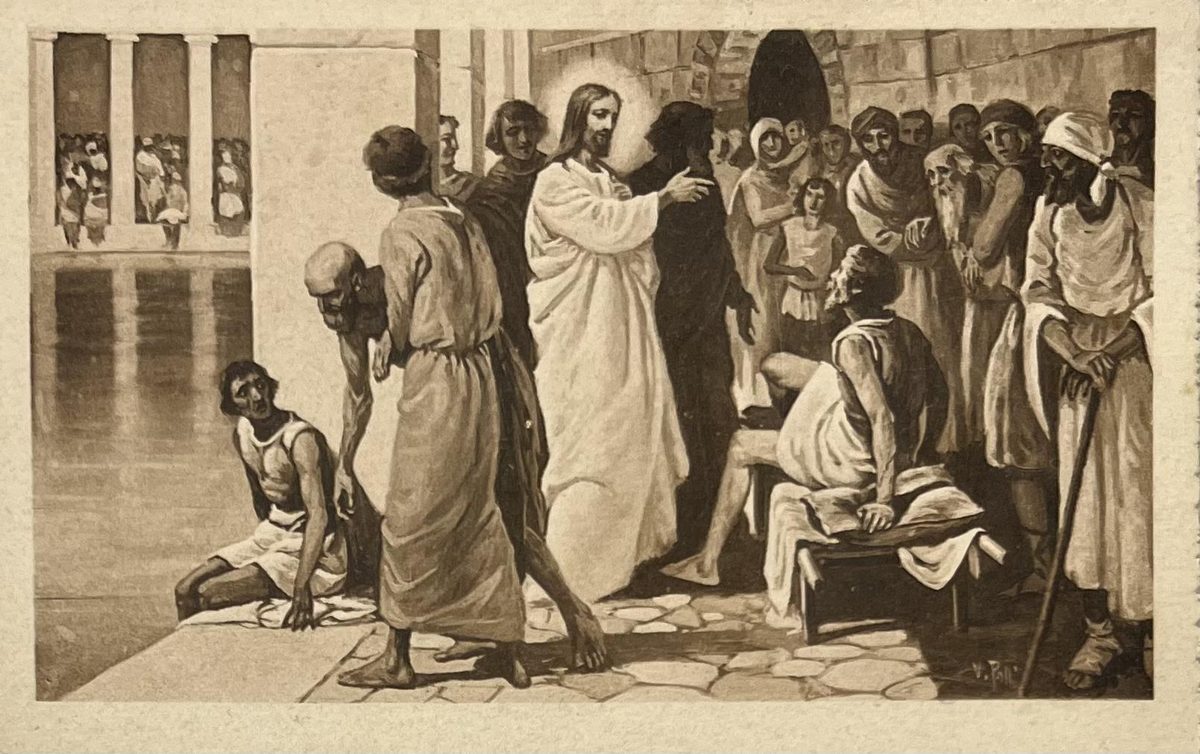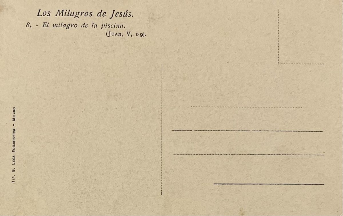 El milagro de la piscina YearAño 1912 PlaceLugar Milan, Italia ↗ LanguageIdioma Spanish Español Ilustración sepia de una pintura de Jesús y sus creyentes en una piscina Jesúspersonas Dominant colourColor dominante ← Back to collection← Volver a la colección View on map →Ver en el mapa →