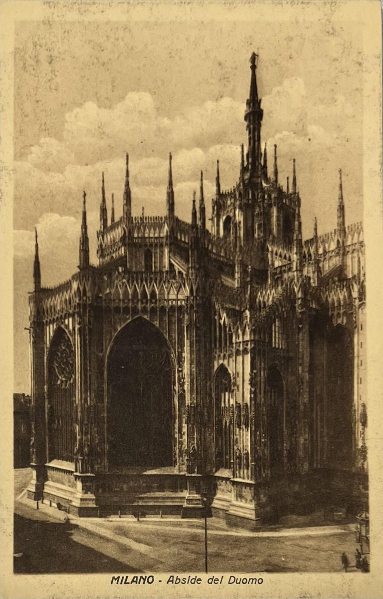Abside del duomo YearAño 1912 PlaceLugar Milan, Italia ↗ LanguageIdioma Italian Italiano Fotografía sepia de catedral Catedraledificios Dominant colourColor dominante ← Back to collection← Volver a la colección View on map →Ver en el mapa →