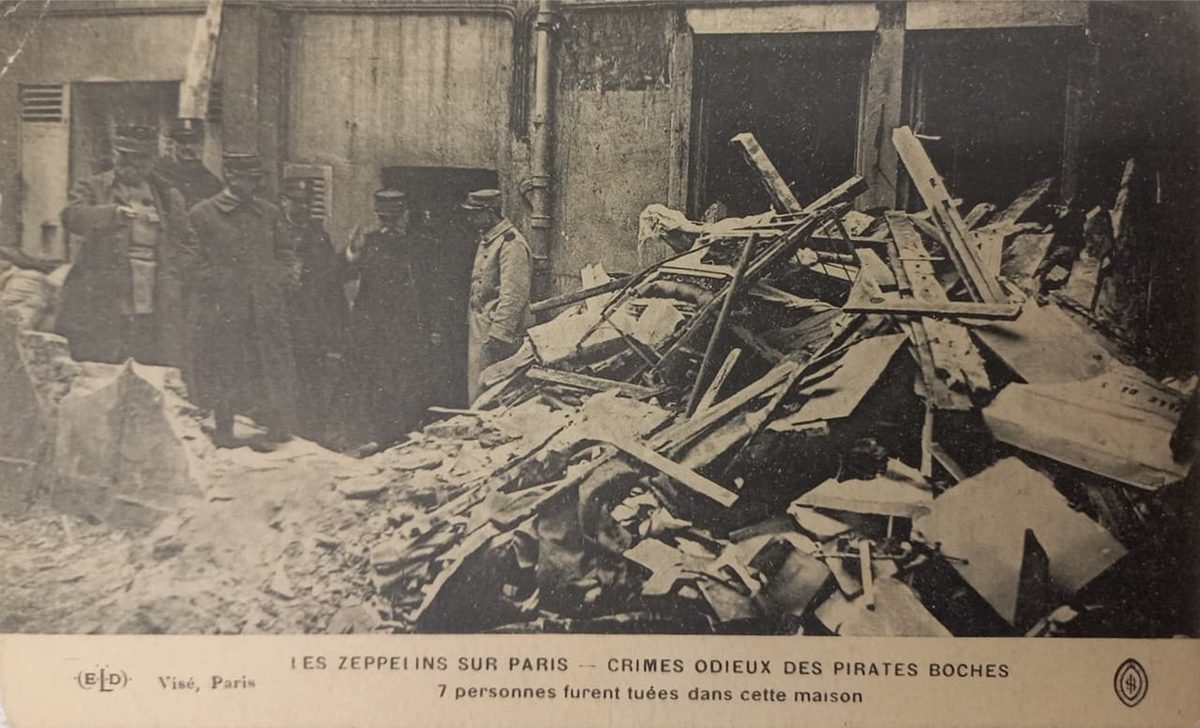 Fotografía de los escombros de una estructura tras un bombardeo Zeppelin en Francia YearAño 1916 PlaceLugar Rue de Rivolie, París, Francia. ↗ LanguageIdioma French Francés SourceFuente Colección de postales de Manuel Campero Fallecieron 7 personas de ese edificio tras eñ hecho Escombros de una casa Dominant colourColor dominante ← Back to collection← Volver a la colección View on map →Ver en el mapa →