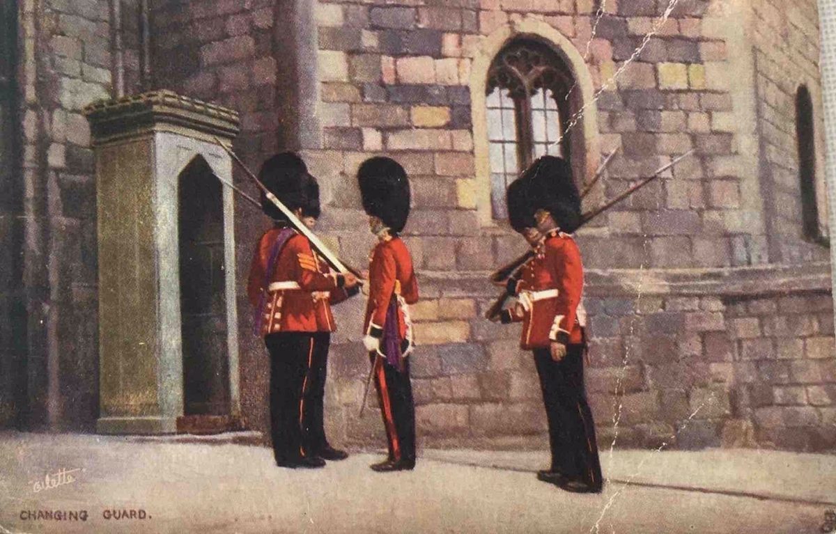 Fotografia de cambio de guardias PlaceLugar Reino Unido ↗ LanguageIdioma Russian Ruso SourceFuente Colección de postales de Manuel Campero El Cambio de la Guardia es el proceso en el que se releva a los guardias al cambiar de turno. Guardias Dominant colourColor dominante ← Back to collection← Volver a la colección View on map →Ver en el mapa →