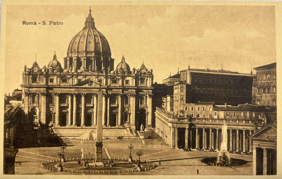 S.Pietro YearAño 1912 PlaceLugar Roma, Italia ↗ LanguageIdioma Italian Italiano Fotografía sepia de edifico Edificio Dominant colourColor dominante ← Back to collection← Volver a la colección View on map →Ver en el mapa →