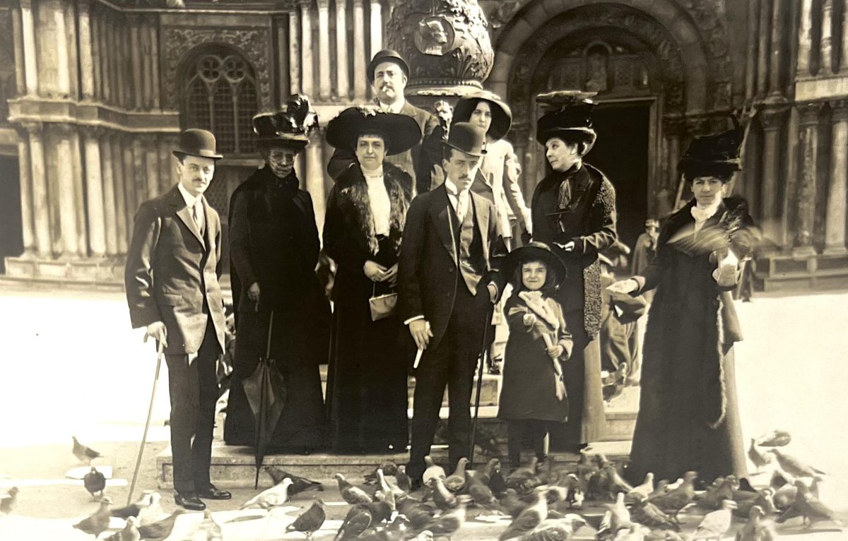 Familia frente a edificio YearAño 1912 PlaceLugar Venecia, Italia ↗ LanguageIdioma Italian Italiano Fotografía en blanco y negro de una familia posando frente a un edificio Personasedificios Dominant colourColor dominante ← Back to collection← Volver a la colección View on map →Ver en el mapa →