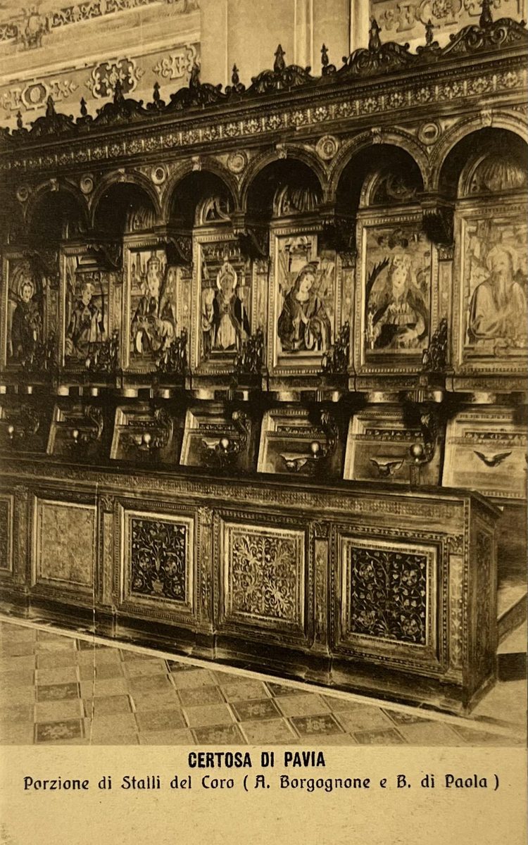 Porción de Stalli del coro YearAño 1912 PlaceLugar Milan, Italia ↗ LanguageIdioma Italian Italiano Fotografía sepia de la cartuja monumental de Pavía sobre la porción de Stalli del coro Interior edificioMonumento Dominant colourColor dominante ← Back to collection← Volver a la colección View on map →Ver en el mapa →