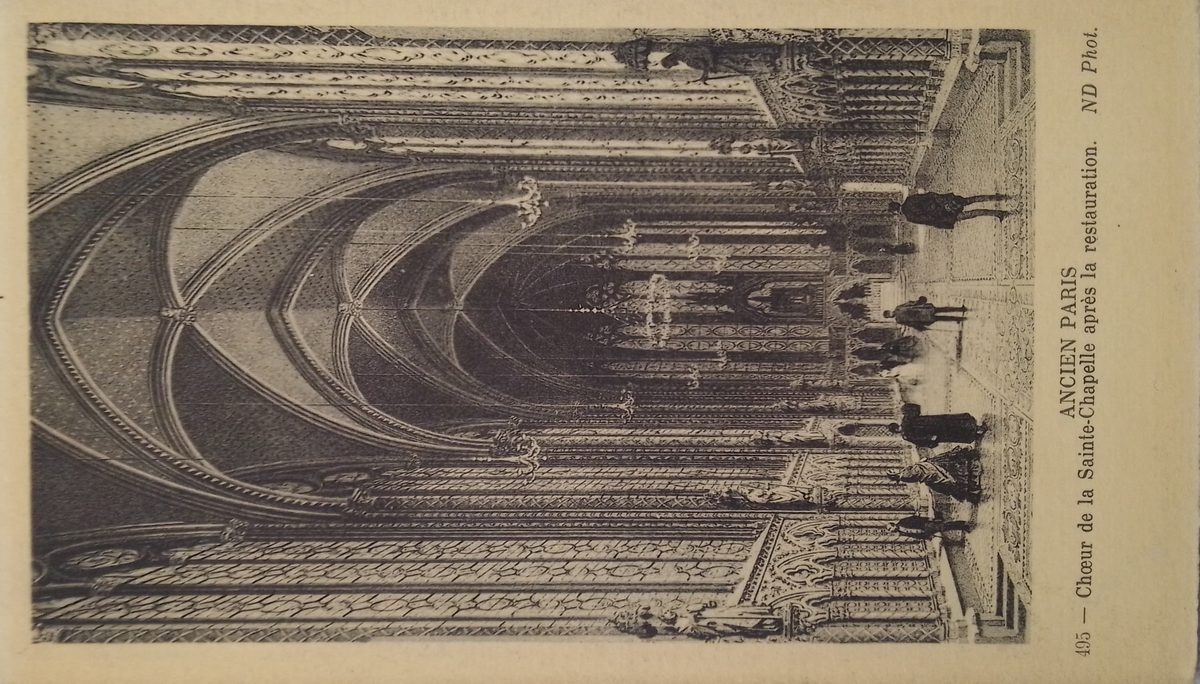 Pintura Santa Capilla PlaceLugar Paris, Francia ↗ LanguageIdioma French Francés SourceFuente Colección de postales de Manuel Campero Coro de la santa capilla después de la restauración Arquitectura, Religion Dominant colourColor dominante ← Back to collection← Volver a la colección View on map →Ver en el mapa →