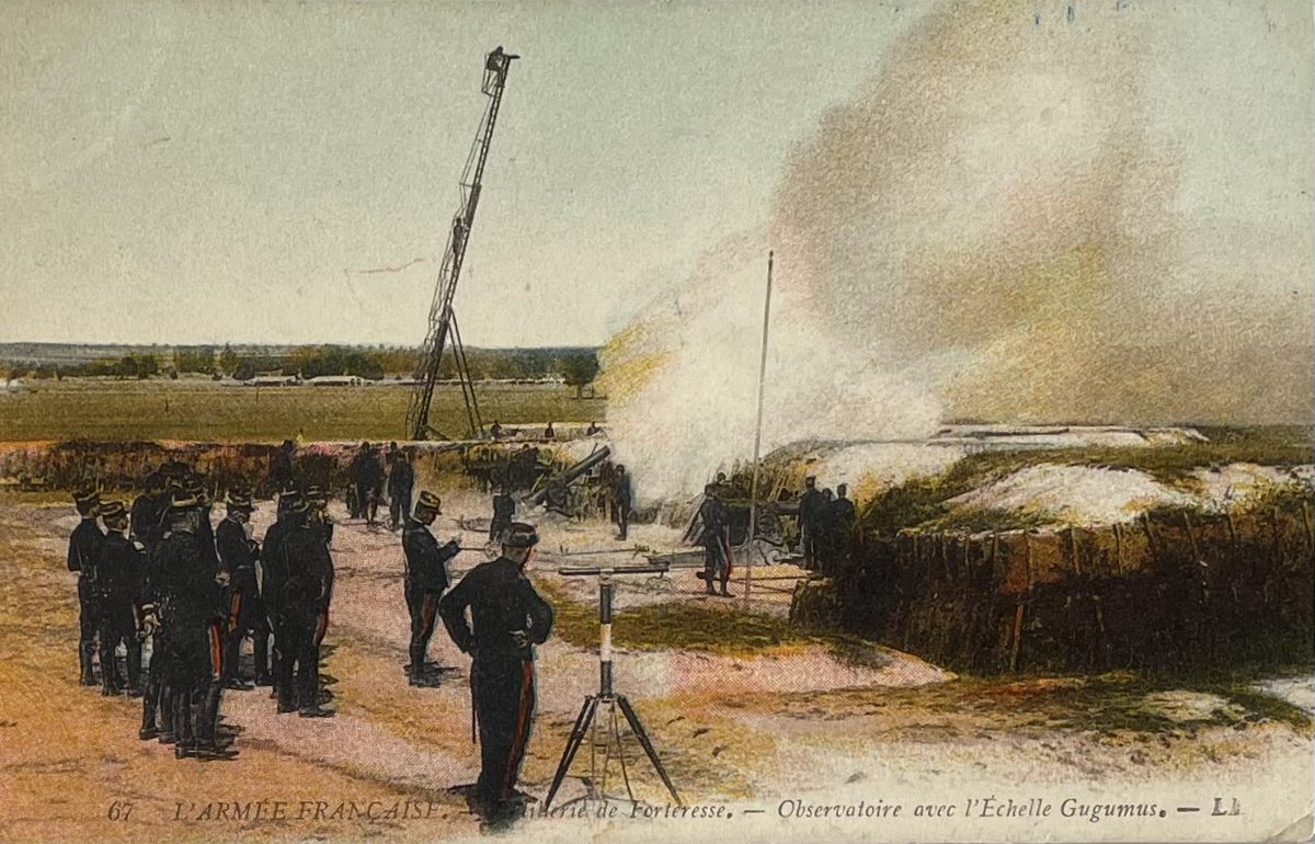 L'Armee Français- Artilleriè de Forteresse YearAño 1911 PlaceLugar Francia ↗ LanguageIdioma French Francés Soldados franceses de la Primera Guerra Mundial en trincheras , fortalezas y escaleras.Color: a color, medidas: 9x14cm EjércitoMiliciaGuerra Dominant colourColor dominante ← Back to collection← Volver a la colección View on map →Ver en el mapa →