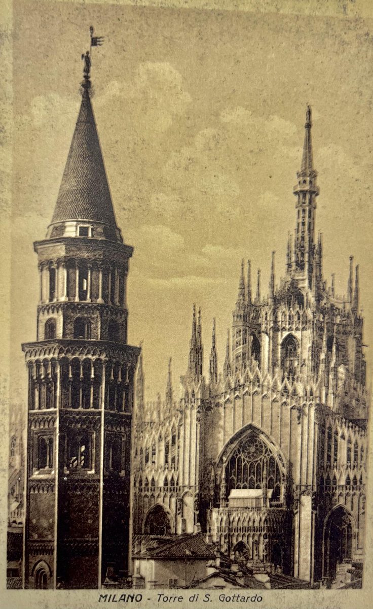 Torre di S. Gottardo YearAño 1912 PlaceLugar Milan, Italia ↗ LanguageIdioma Italian Italiano Fotografía sepia de catedral Catedraledificios Dominant colourColor dominante ← Back to collection← Volver a la colección View on map →Ver en el mapa →