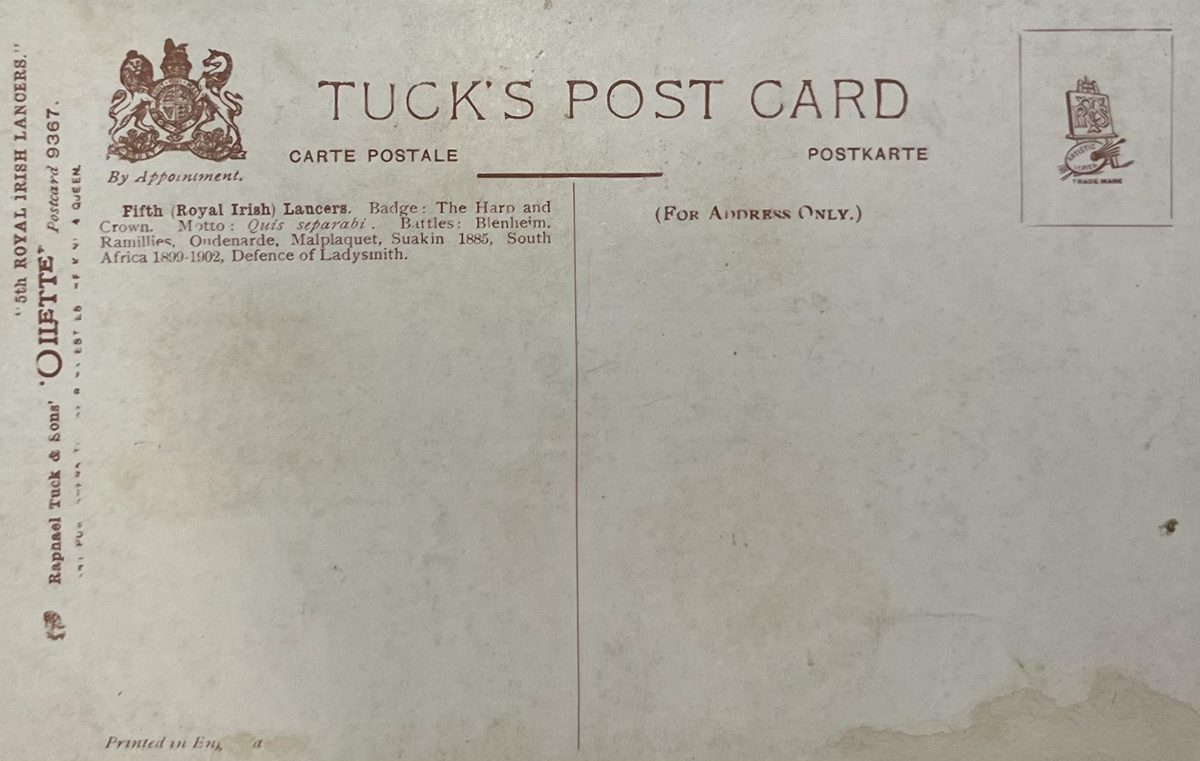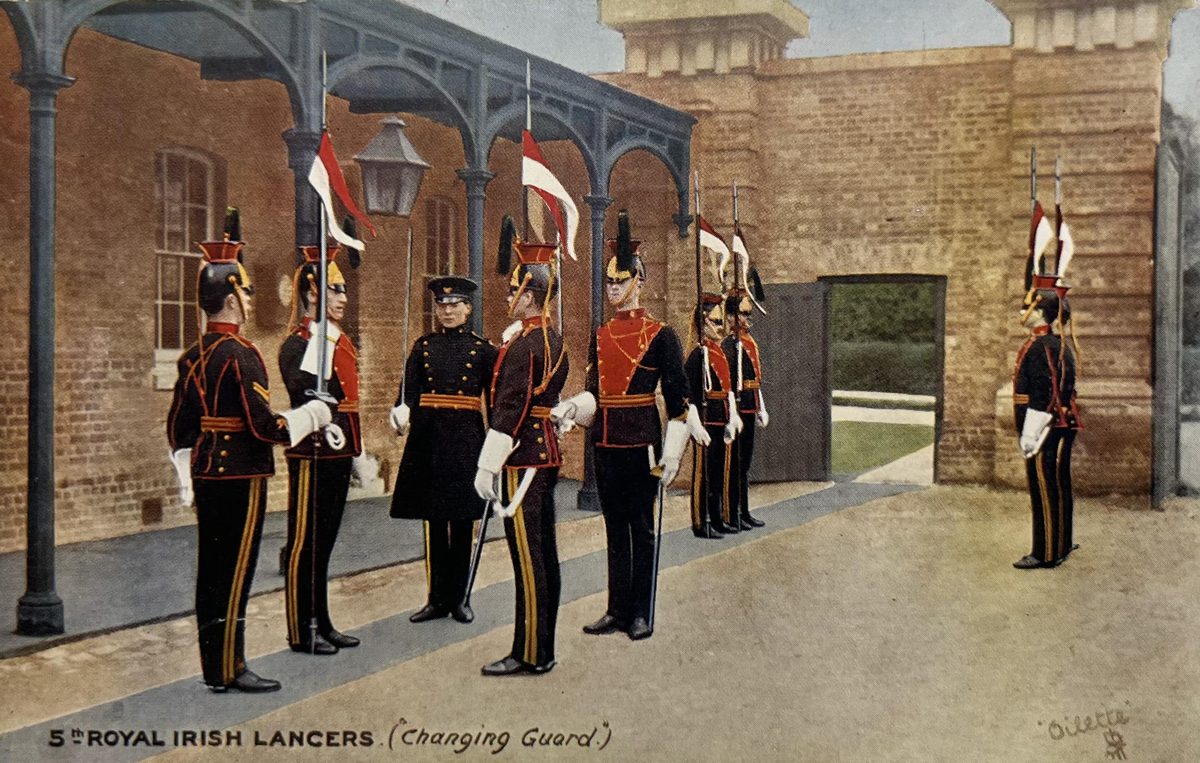 Royal Irish Lancers YearAño 1912 PlaceLugar Irlanda ↗ LanguageIdioma English Inglés Fotografía a color de escuadron de soldados Escuadron de soldados con banderas Dominant colourColor dominante ← Back to collection← Volver a la colección View on map →Ver en el mapa →