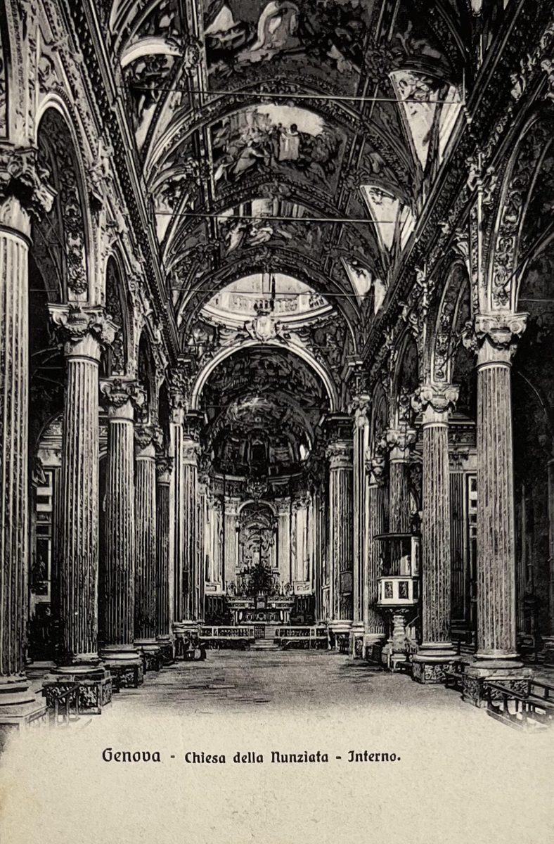 Interior de la iglesia de la Nunziata YearAño 1912 PlaceLugar Génova, Italia ↗ LanguageIdioma Italian Italiano Ilustración blanco y negro del interior de la iglesia de la Nunziata de Génova InteriorIglesia Dominant colourColor dominante ← Back to collection← Volver a la colección View on map →Ver en el mapa →